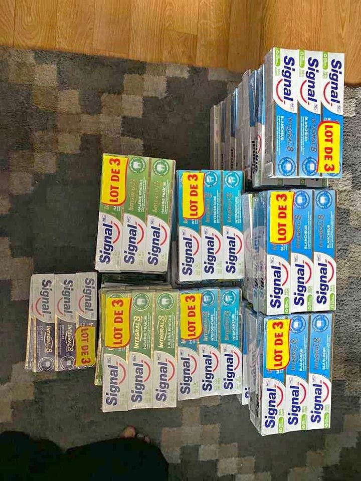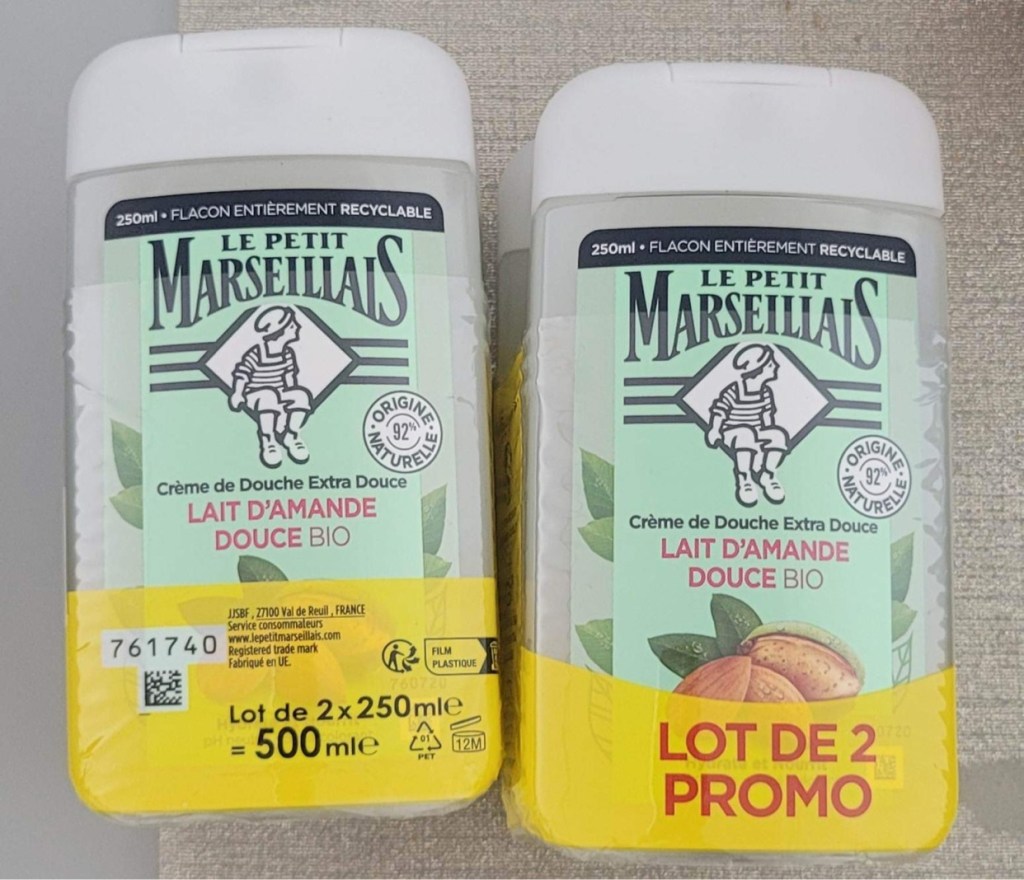 Gel douche Petit marseillais amande douce 250 mlGel douche fève de café et baie d’AçaïGel douche fève de café et baie d’AçaïGel douche fève de café et baie d’AçaïGel douche fève de café et baie d’AçaïDentifrices enfants signal 3-6 ansDentifrice signal intégralDentifrice Rebi-dentalDentifrice enfant Colgate 6 à 9 ansDentifrice enfant Colgate 2 à 5 ansBrosse à dent DentoCirage noir PalcShampooing trésor de miel & cire d’abeilles Garnier (il existe plusieurs parfums)Crème à l’huile d’olive200 cotons tiges SimplyChampooing Avocat et beurre de karité GarnierDéodorant Dove originalChampooing huile d’argan et cameliaEau de parfum Yes ParisEau de parfum Italian StyleEau de parfum Caroline n°1Eau de toilette CharleGel cire rouge GummyHairgel GummyGillette Blue II plus